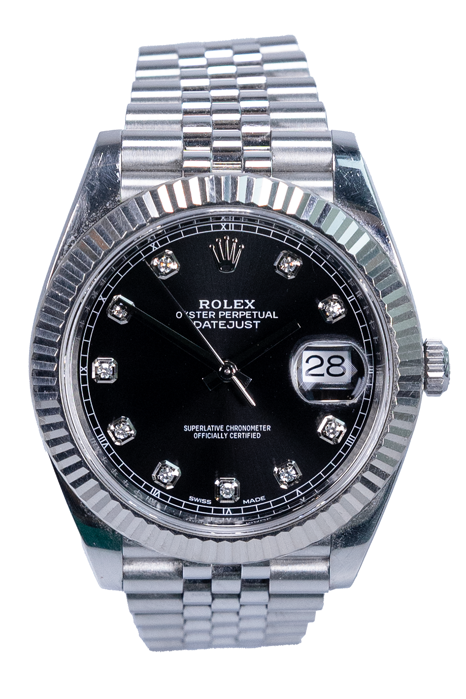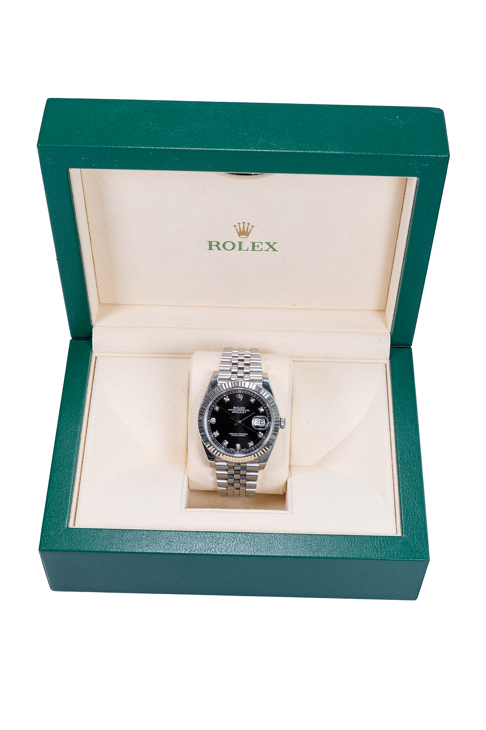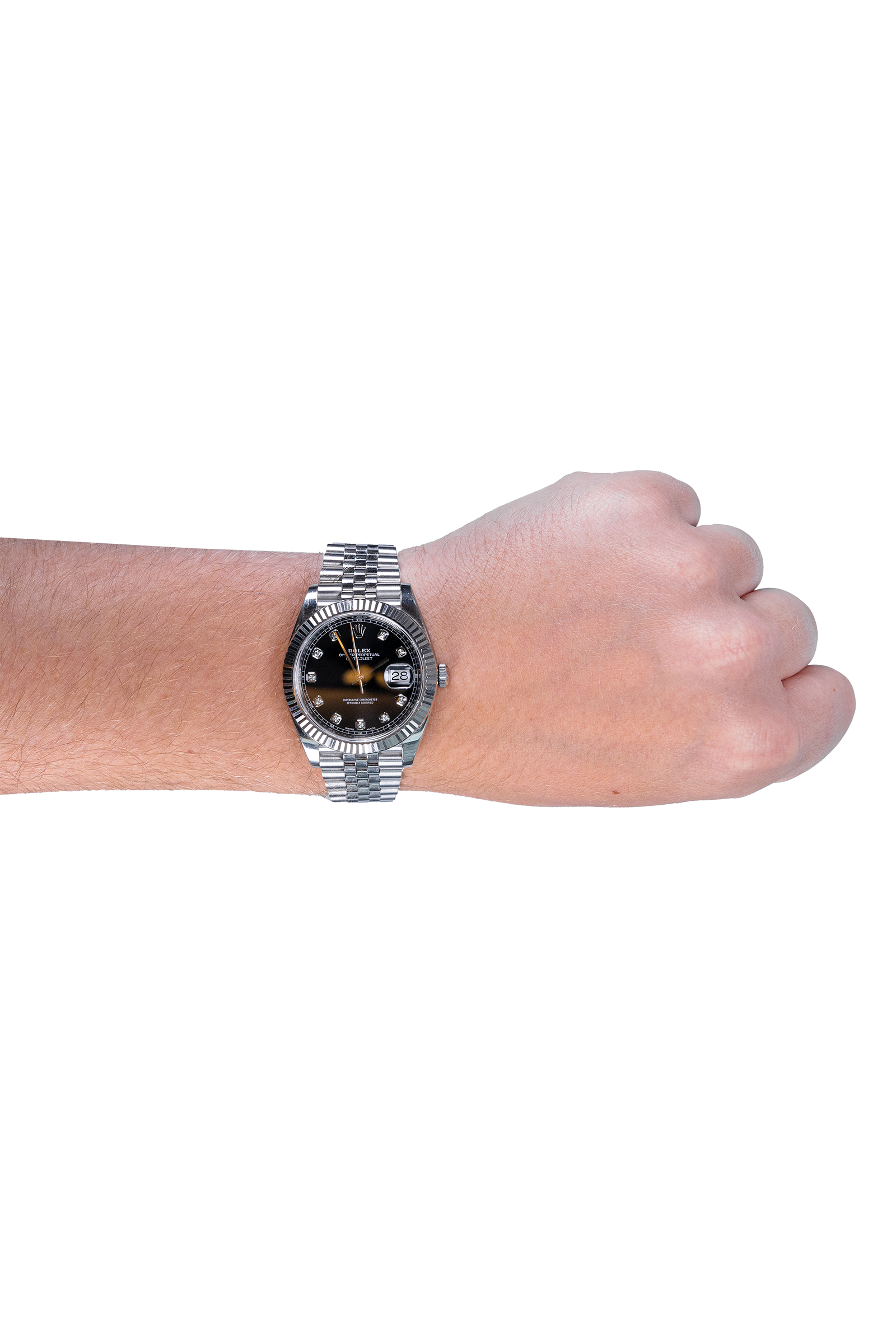 Rolex Oyster Perpetual Datejust 126334 (2018) – Gebrauchsspuren, Stahl, 41mm, schwarzes Zifferblatt mit Diamanten, im Fullset