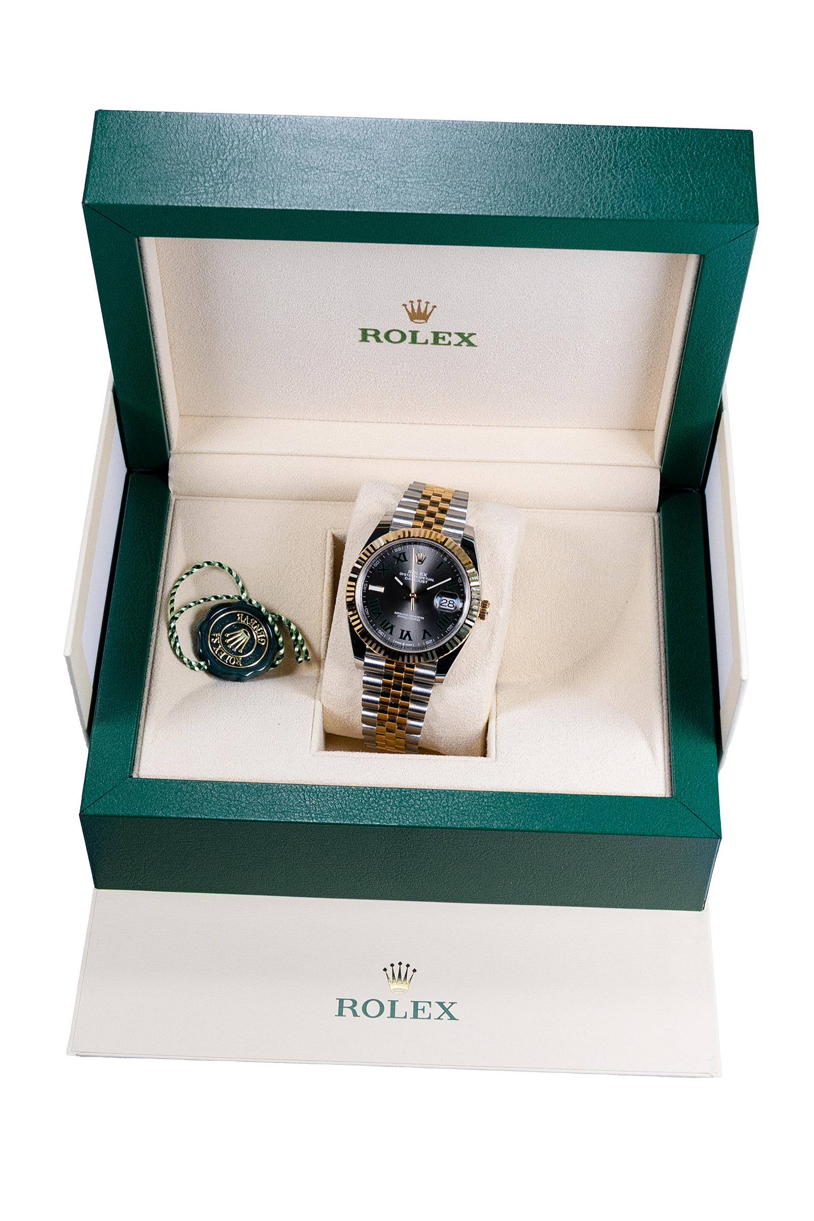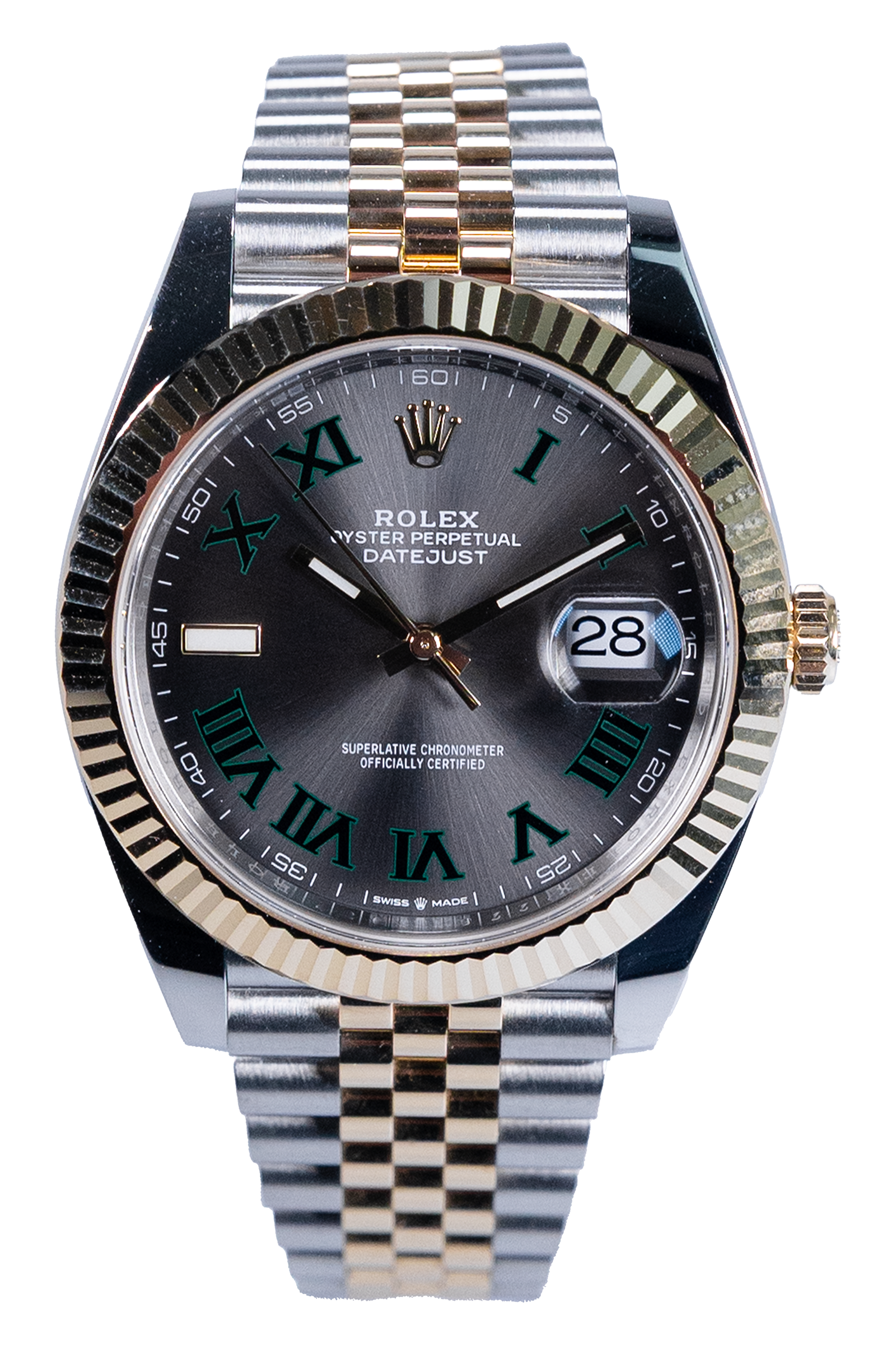 Diese Datejust 41 aus 2021 überzeugt mit dem beliebten Wimbledon-Zifferblatt – rhodiniert mit grünen römischen Ziffern – und einem eleganten Bicolor-Design aus Stahl und Gelbgold. Mit 41 mm Gehäusedurchmesser, Jubilee-Band und der ikonischen geriffelten Lünette verbindet sie sportliche Präsenz mit klassischer Eleganz. Die Uhr zeigt leichte Gebrauchsspuren, befindet sich jedoch in sehr gutem Zustand und wird im kompletten Fullset geliefert.