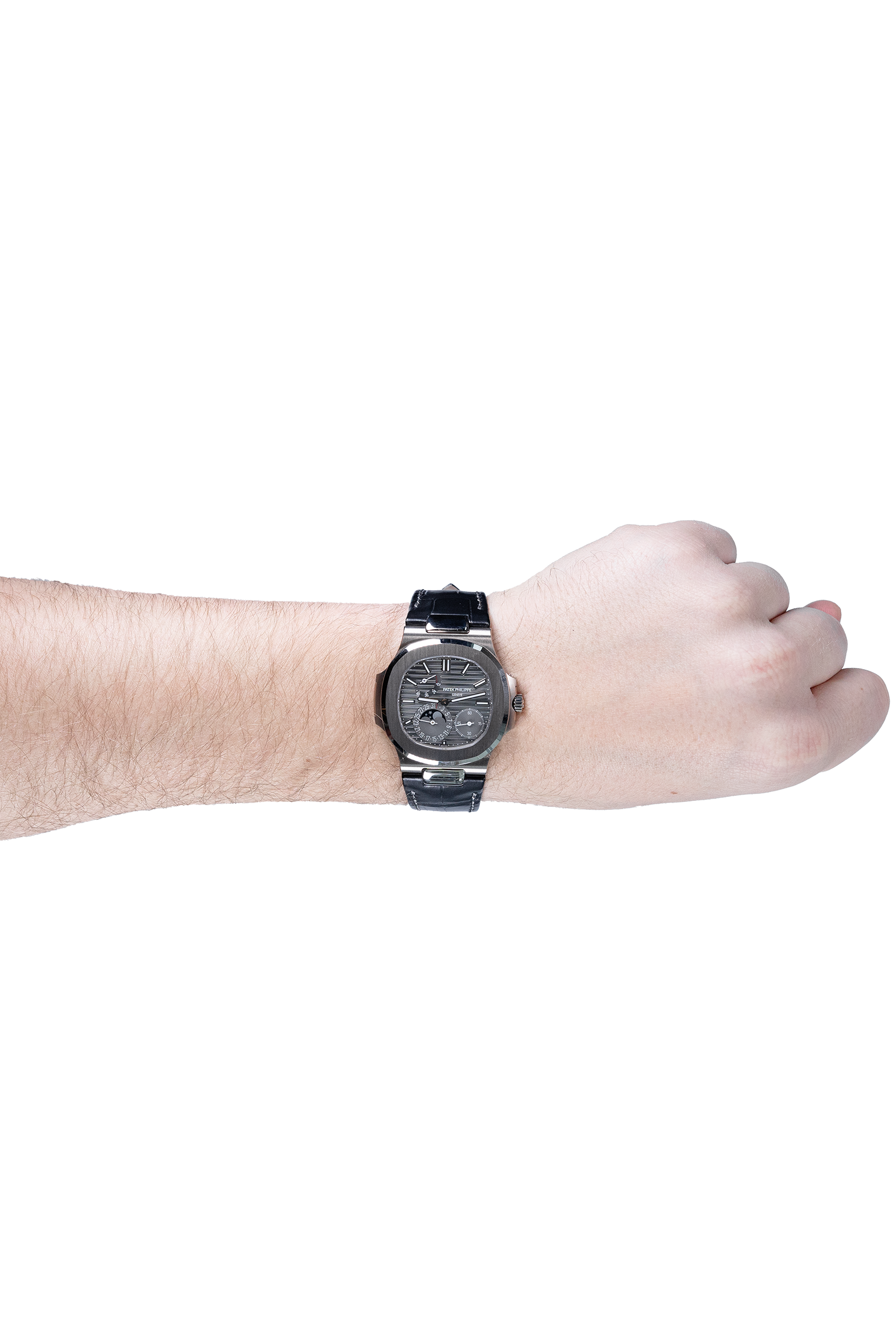 Diese Patek Philippe Nautilus 5712G-001 aus Weißgold zählt zu den begehrtesten Varianten der Linie. Mit ihrem charakteristischen 40-mm Gehäuse, dem eleganten blauen Zifferblatt mit Mondphase, Gangreserveanzeige und Datum sowie dem edlen Lederarmband verbindet sie sportliche Raffinesse mit hoher uhrmacherischer Komplexität. Die Uhr ist neu und ungetragen und wird im kompletten Fullset, inklusive Originalbox und Papieren, geliefert – ein exklusives Highlight für anspruchsvolle Sammler.