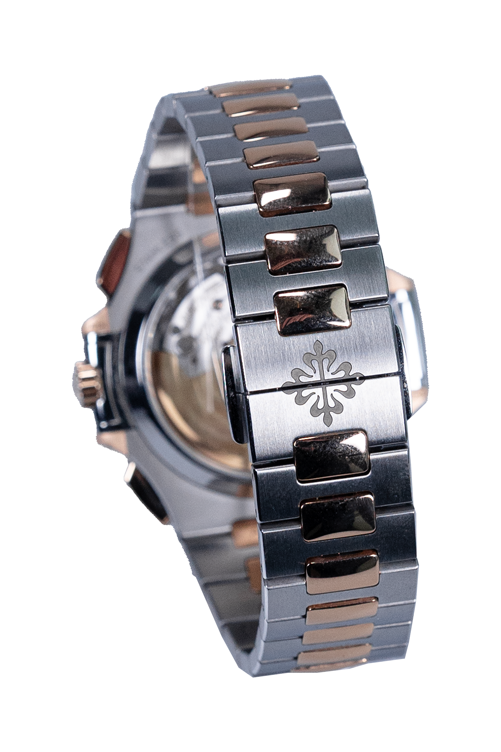 Diese Patek Philippe Nautilus 5980/1AR-001 aus 2023 vereint luxuriöse Materialien mit sportlicher Präsenz. Das markante 40,5-mm Gehäuse in Stahl und Roségold harmoniert perfekt mit dem blauen Zifferblatt und dem integrierten Bicolor-Armband. Der charakteristische Chronograph mit monopusherartiger Datumsanzeige macht dieses Modell zu einem echten Highlight der Nautilus-Linie. Die Uhr befindet sich in nahezu neuwertigem Zustand und wird im kompletten Fullset, inklusive Box und Papieren, geliefert – ein exklusives Sammlerstück mit beeindruckender Ausstrahlung.