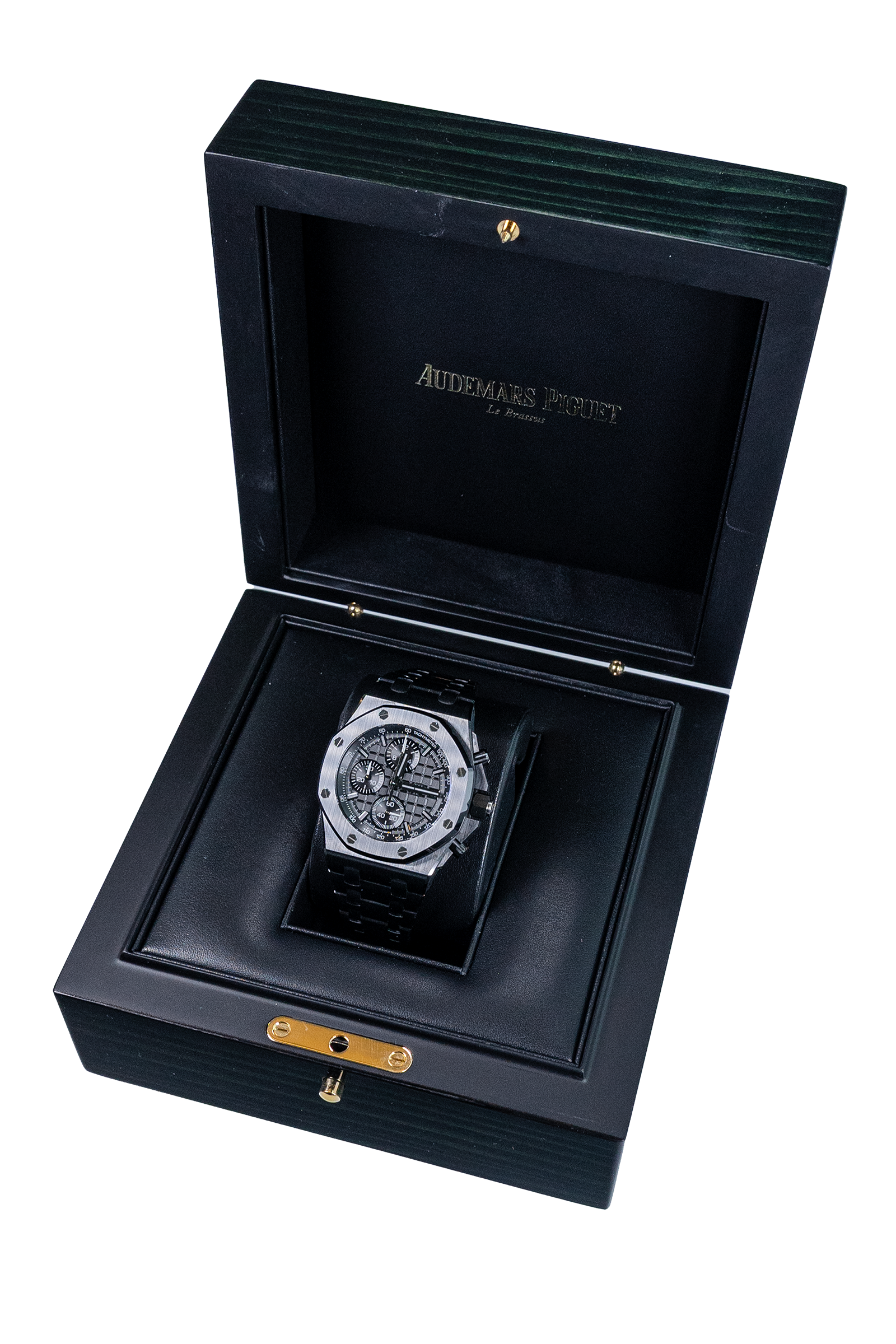 Diese Royal Oak Offshore aus 2025 präsentiert sich im modernen Look mit einem robusten 42 mm Gehäuse aus schwarzer Keramik und integriertem Armband. Sportlich-markantes Design, kombiniert mit der hohen Uhrmacherkunst von Audemars Piguet, machen dieses Modell zu einem echten Highlight der Offshore-Kollektion. Die Uhr ist wie neuund wird im kompletten Fullset, inklusive Box und Papieren, geliefert.