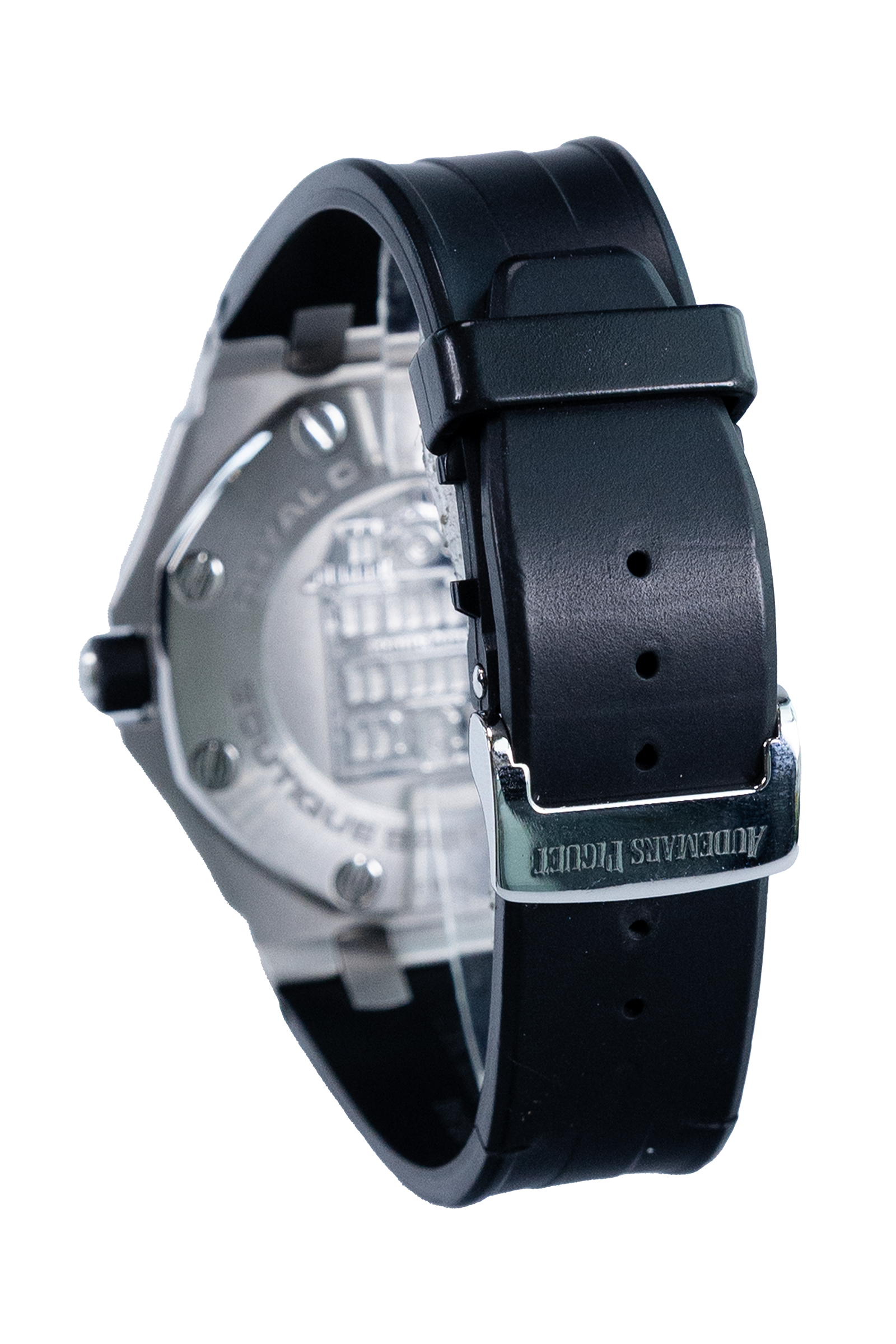 Diese seltene Boutique-Sonderedition aus der Royal Oak Offshore Diver Reihe verbindet sportliche Funktionalität mit markantem Design. Das Edelstahlgehäuse in 42 mm beherbergt das auffällige schwarze Tapisserie-Zifferblatt mit leuchtend orangefarbenen Akzenten, ergänzt durch ein passendes schwarzes Kautschukarmband. Geliefert im kompletten Fullset – ein gesuchtes Sammlerstück für Offshore-Enthusiasten.