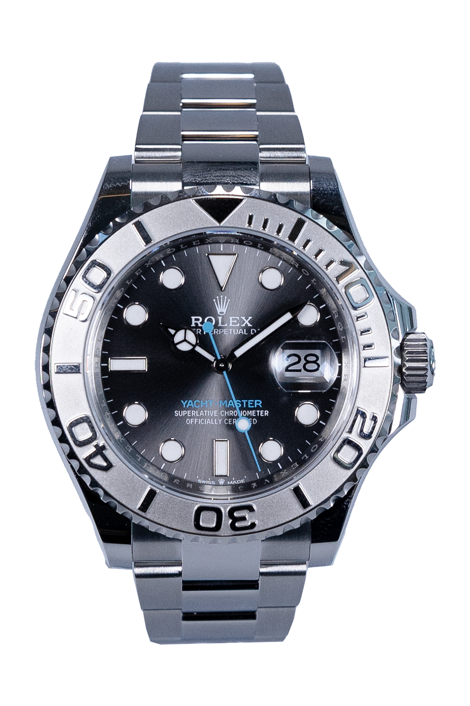 Diese Rolex Yacht-Master 126622 aus 2025 vereint sportlichen Luxus mit maritimer Eleganz. Ihr markantes 40 mm Edelstahlgehäuse wird durch die Platinlünette und das charakteristische Rhodium-Zifferblatt mit blauen Akzenten perfekt ergänzt. Die Uhr ist neu und ungetragen und kommt im kompletten Fullset – inklusive Originalbox und Papieren. Eine sportlich-elegante Rolex für Alltag und Segeldeck gleichermaßen.